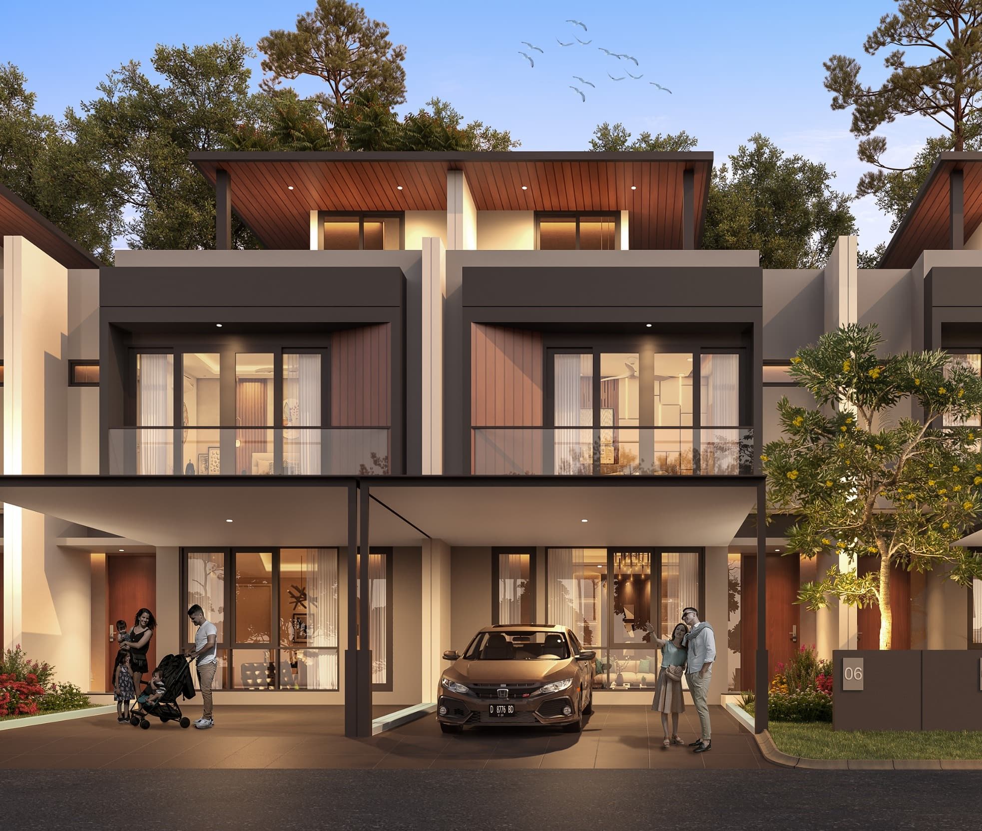 Cluster perumahan akan dilengkapi dengan area terbuka hijau dan disekitarnya terdapat banyak danau yang dilengkapi dengan jogging track, gazebo, dermaga, dan taman yang asri.